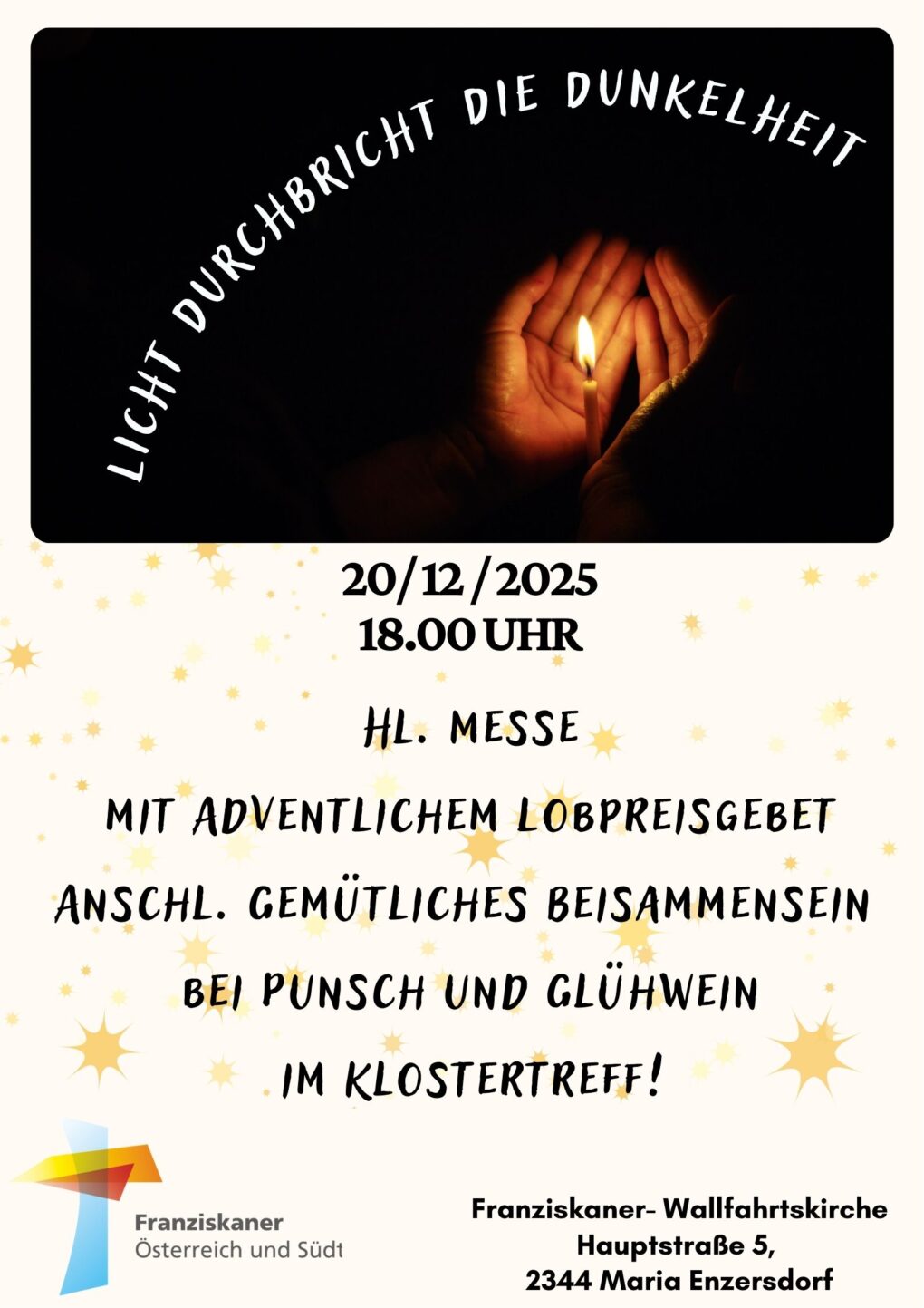 Am Freitag den 23.2. luden die Brüder Franziskaner aus Maria Enzersdorf zu einer Fackelwanderung ein. Wir trafen uns im Pilgerhof und fuhren in Fahrgemeinschaften zur Burg Liechtenstein. Nach einem gemeinsamen Gebet und spiritueller Einführung wurden die Fackeln angezündet. Im Licht der Fackeln und in Gesprächen gingen wir durch den Wald und konnten uns über das Licht, das Feuer und die Lichtmomente in unserem Leben austauschen.