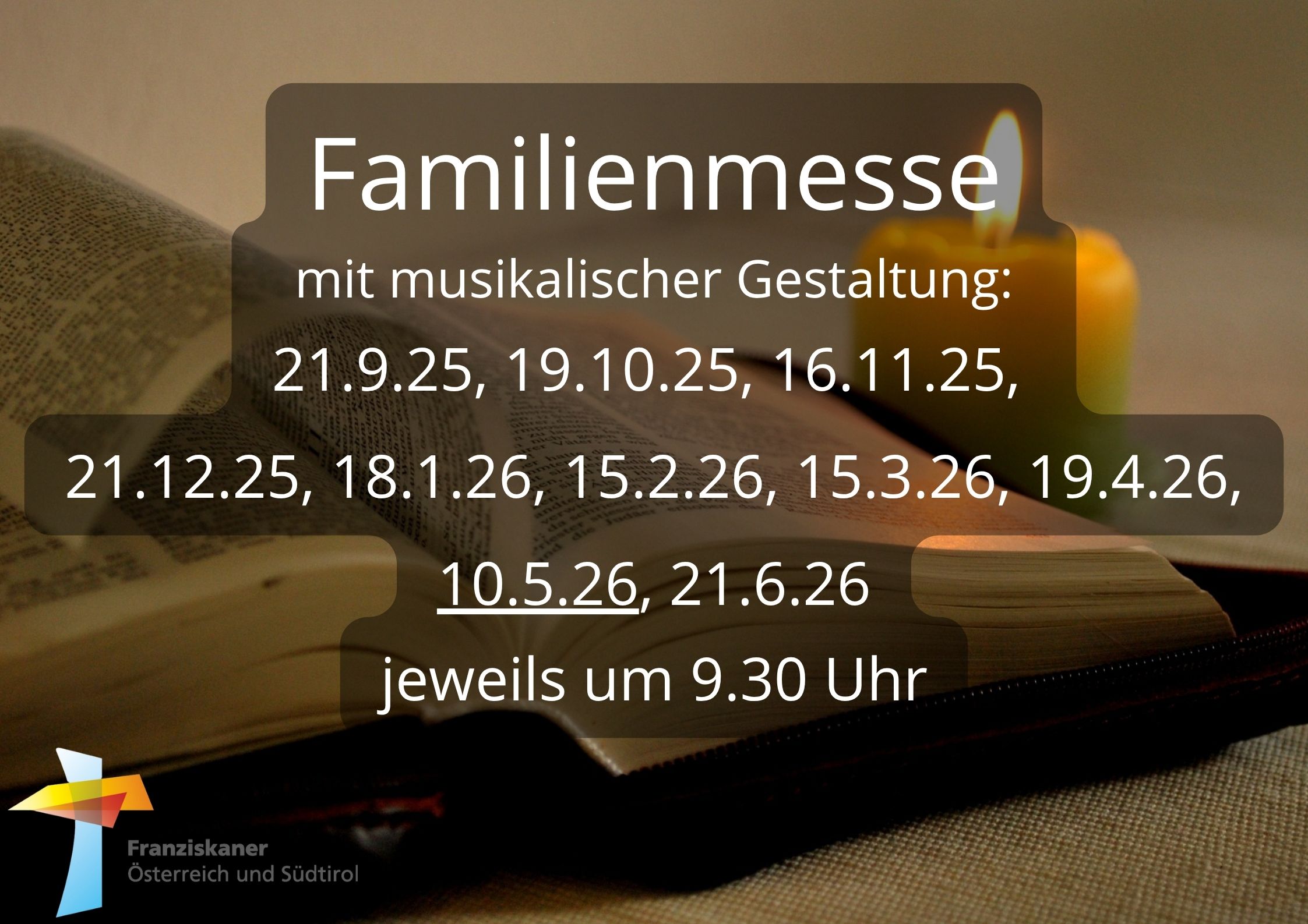 Familienmesse mit musikalischer Gestaltung Herzliche Einladung zu unserer Famlienmesse mit musikalischer Gestaltung. Hier die nächsten Termine: