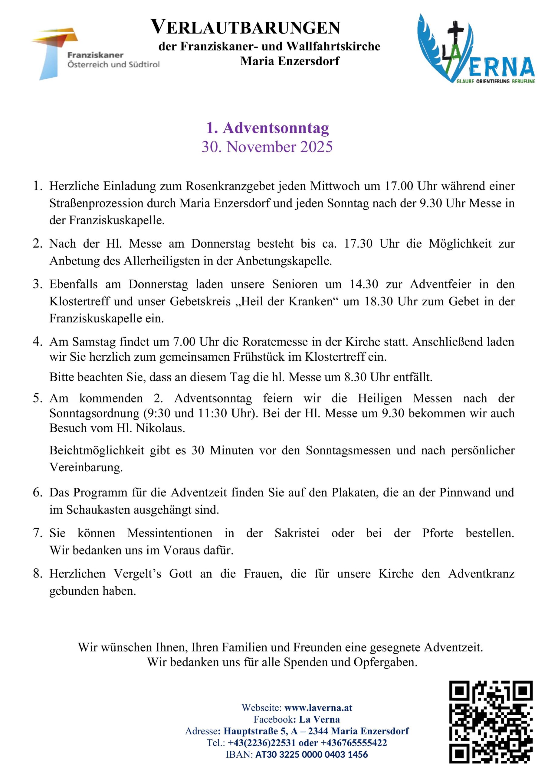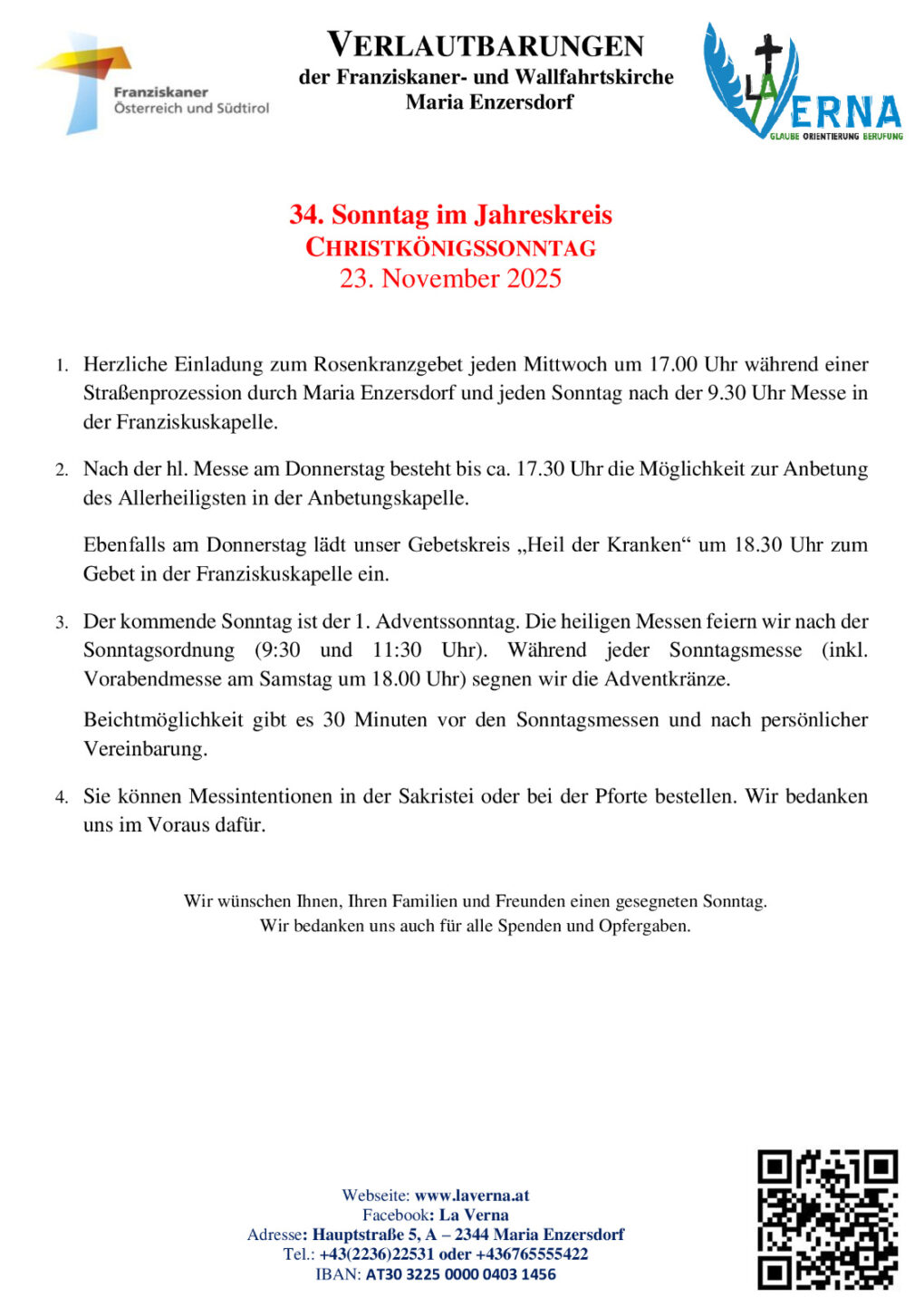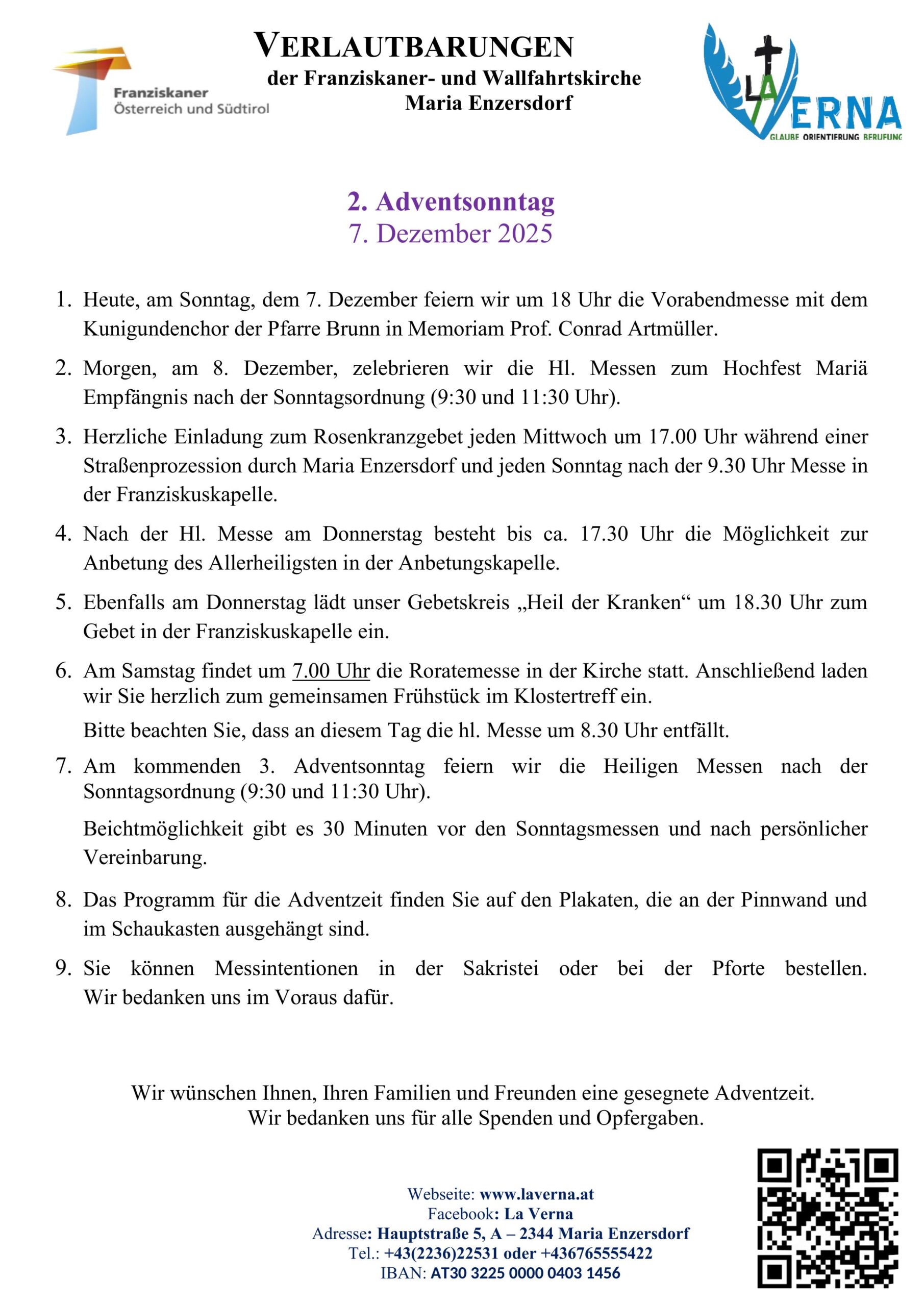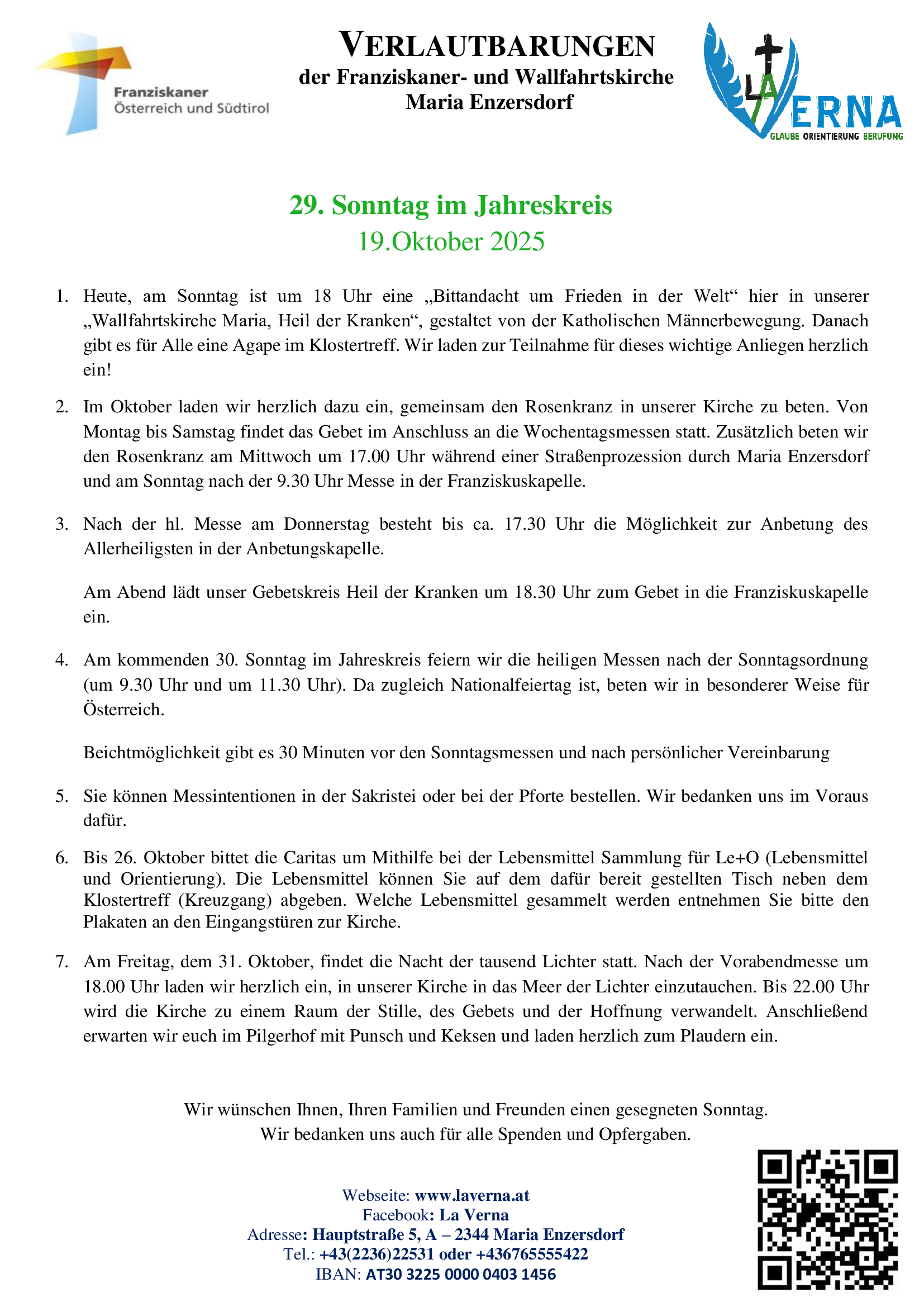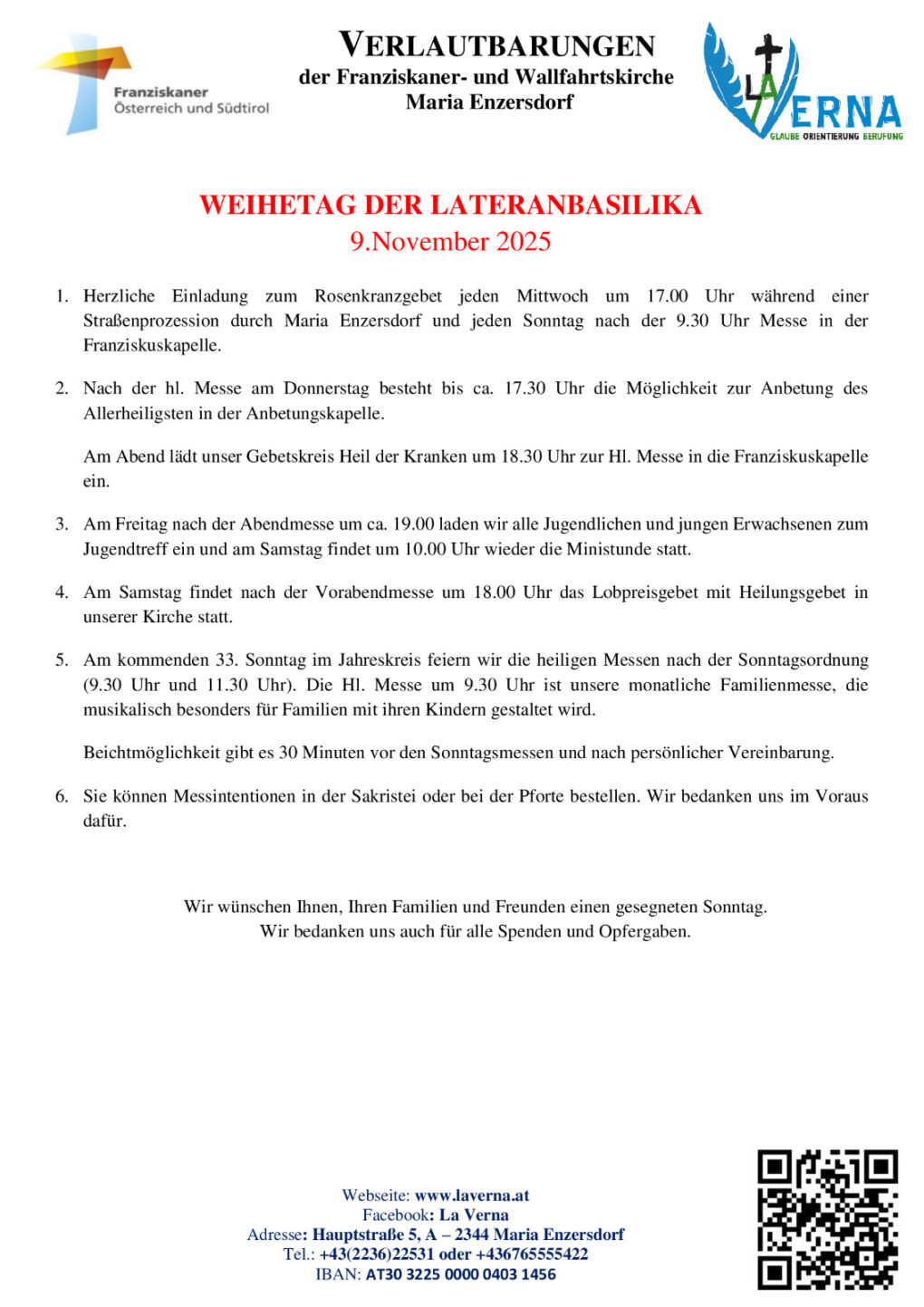 Verlautbarungen der Kloster- und Wallfahrtskirche