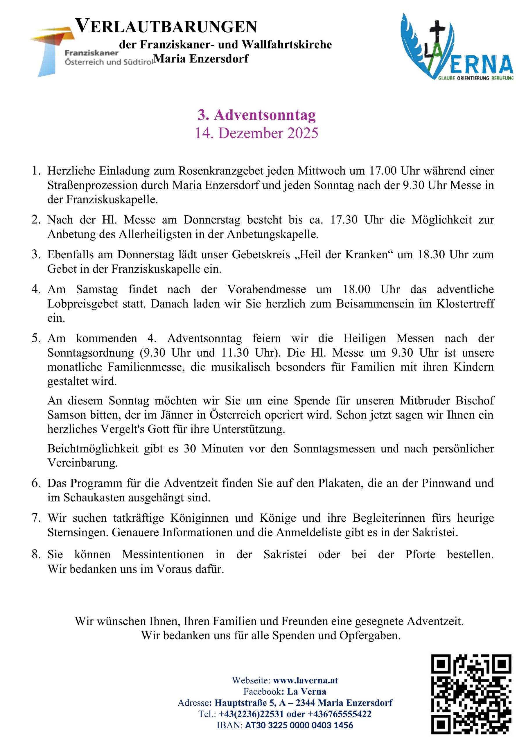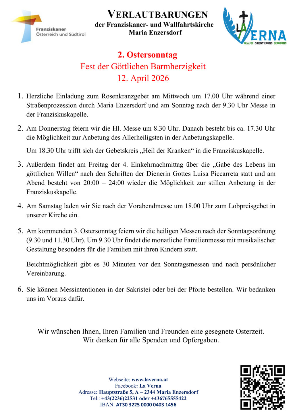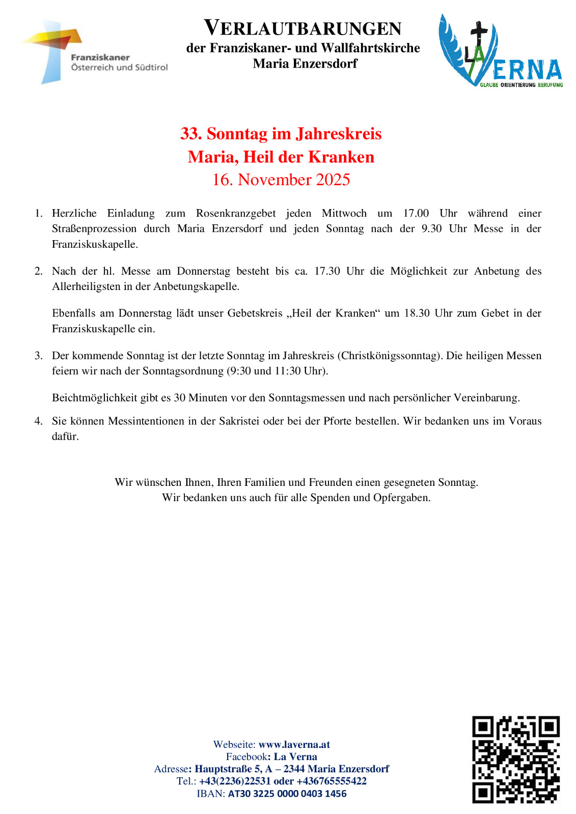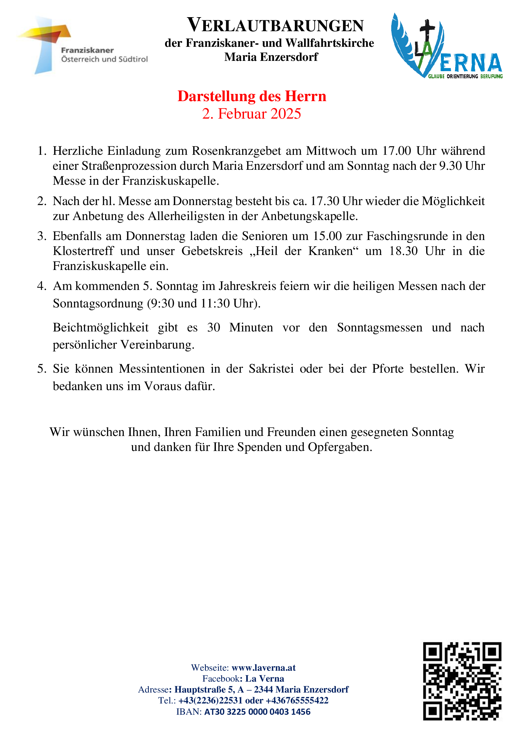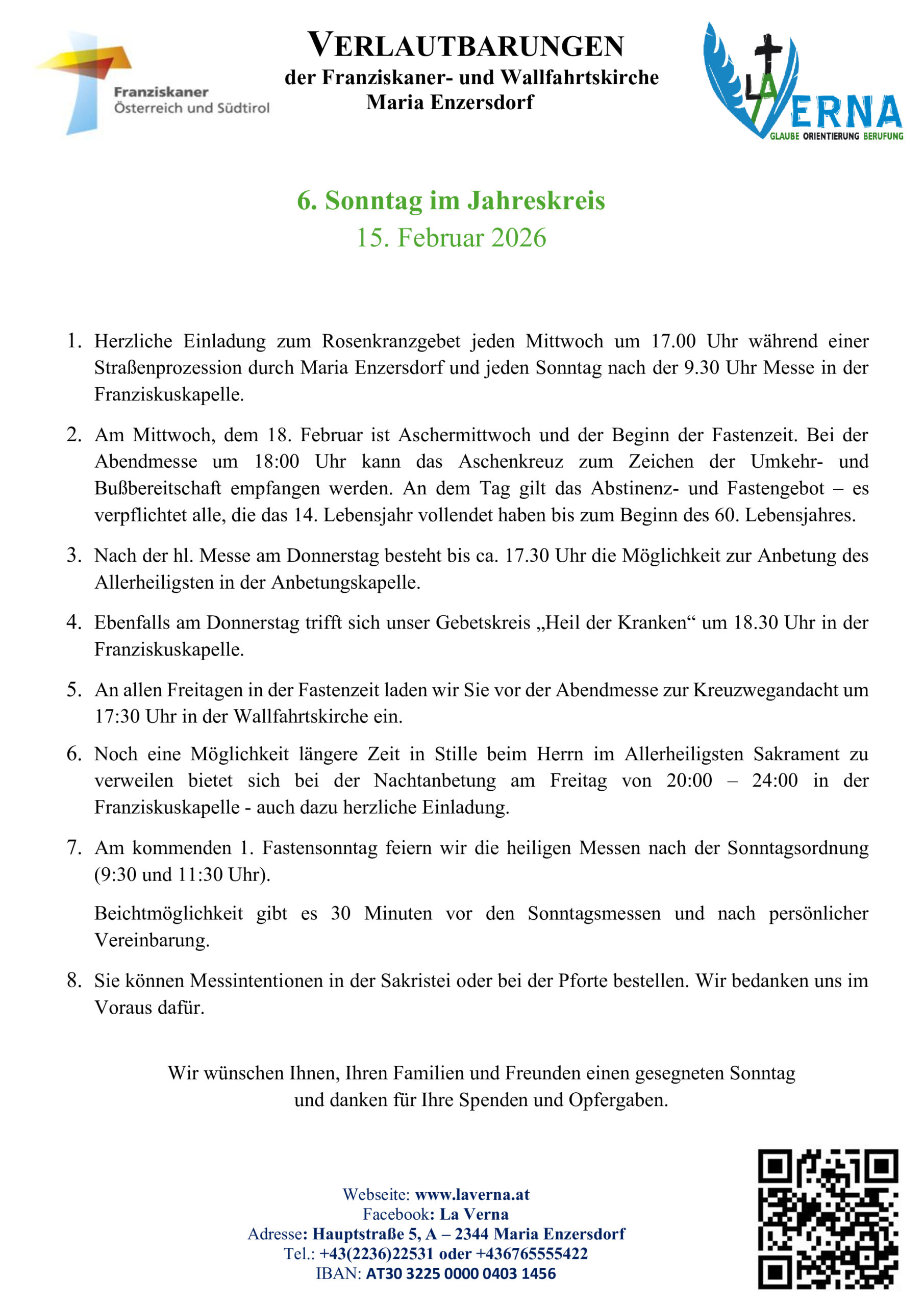 Verlautbarungen der Kloster- und Wallfahrtskirche
