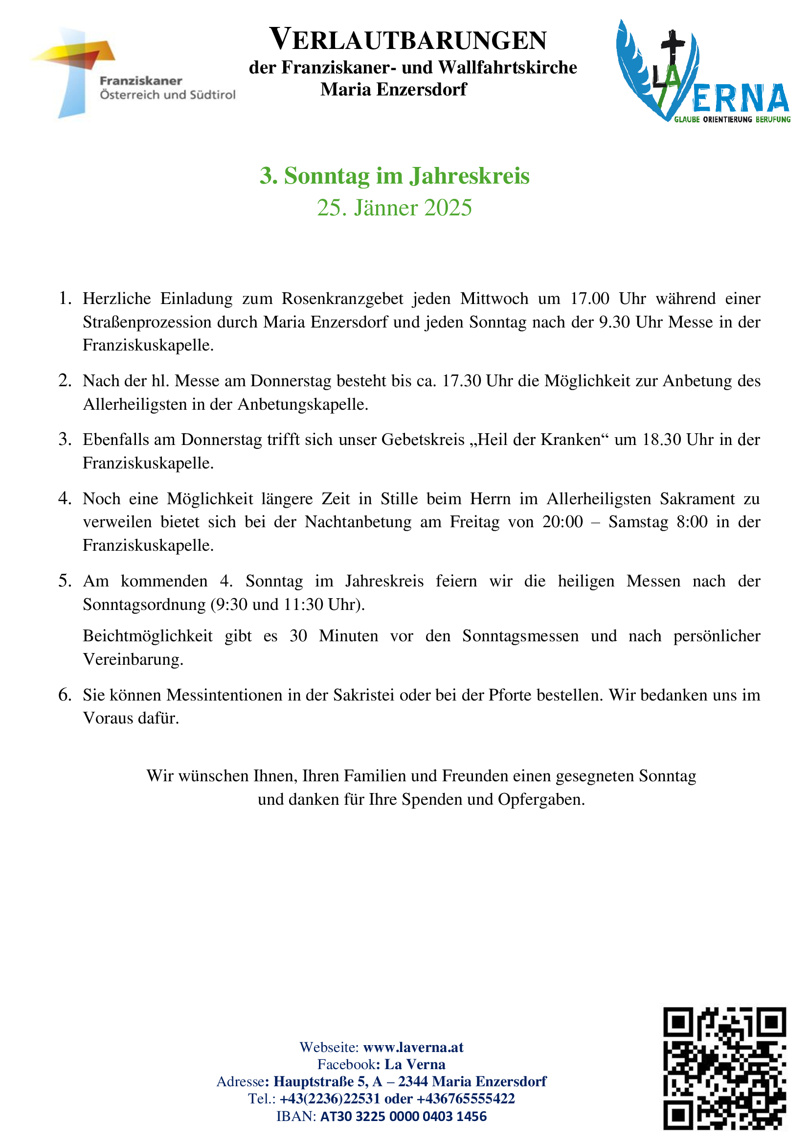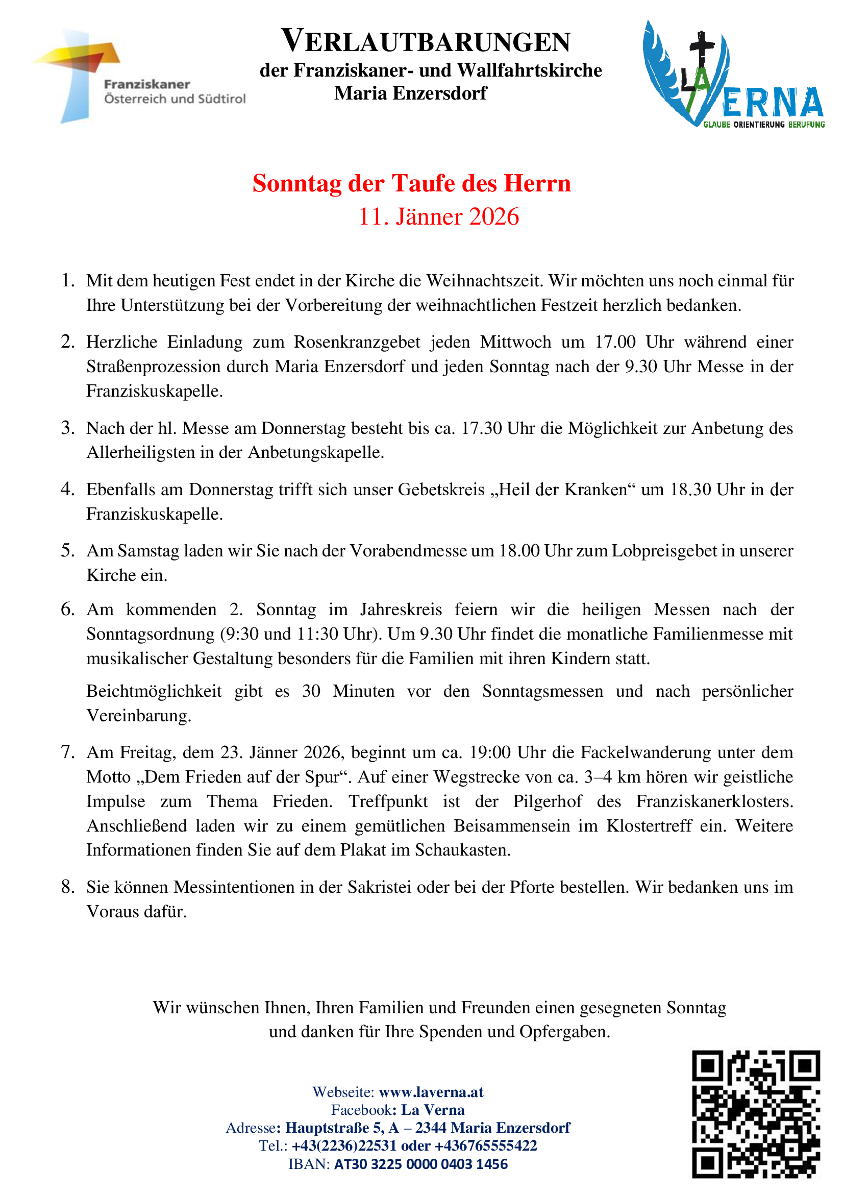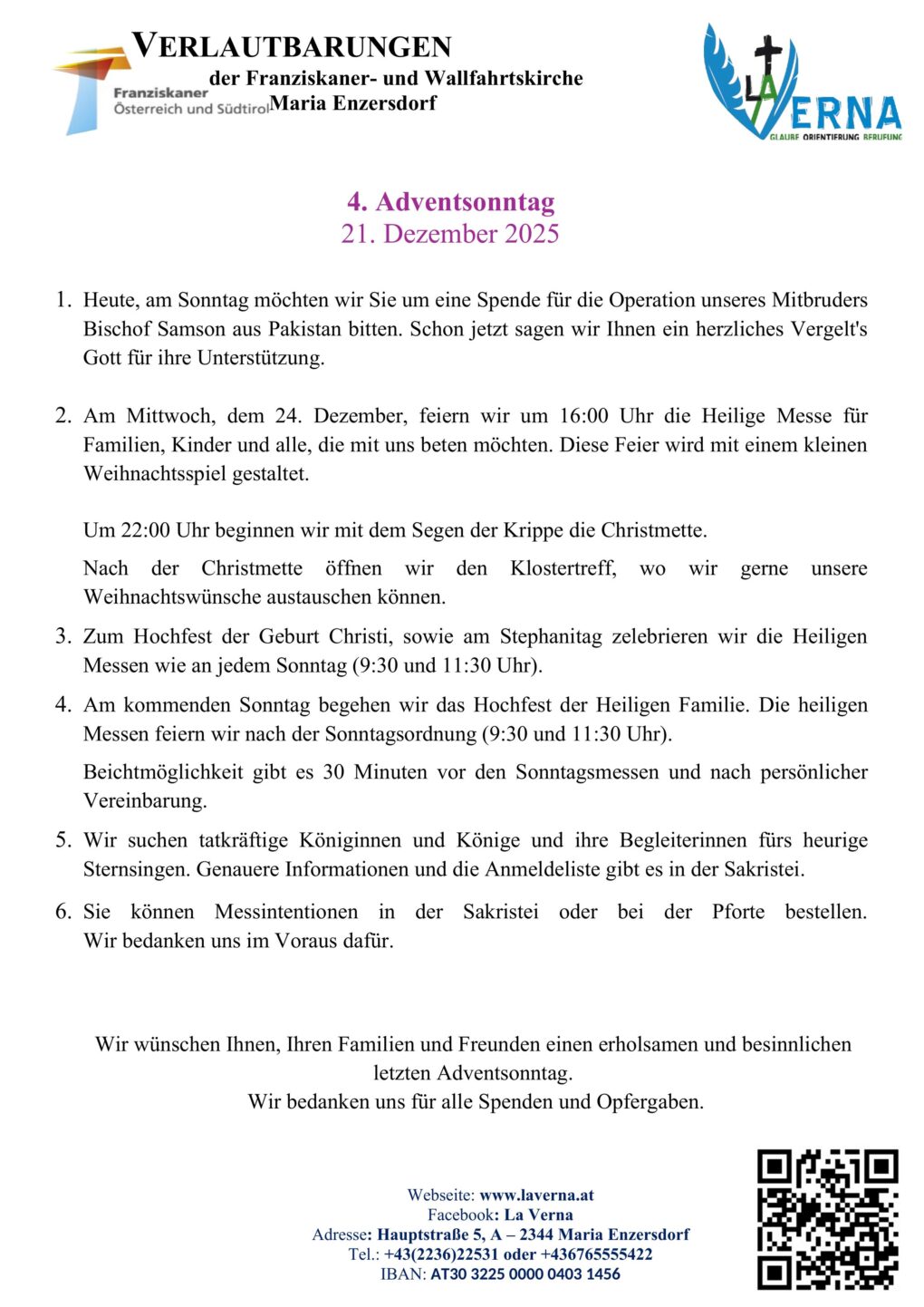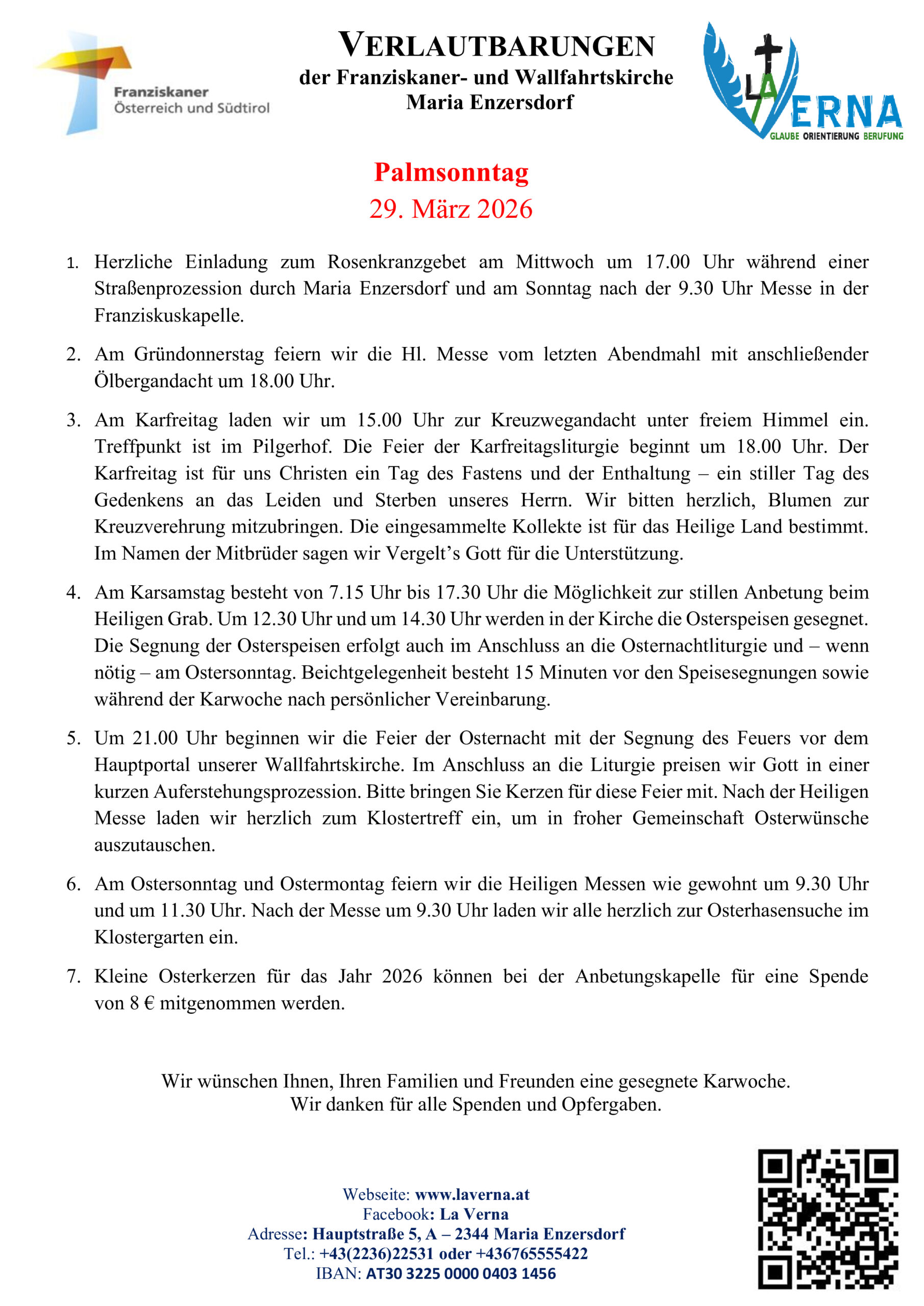 Verlautbarungen der Kloster- und Wallfahrtskirche