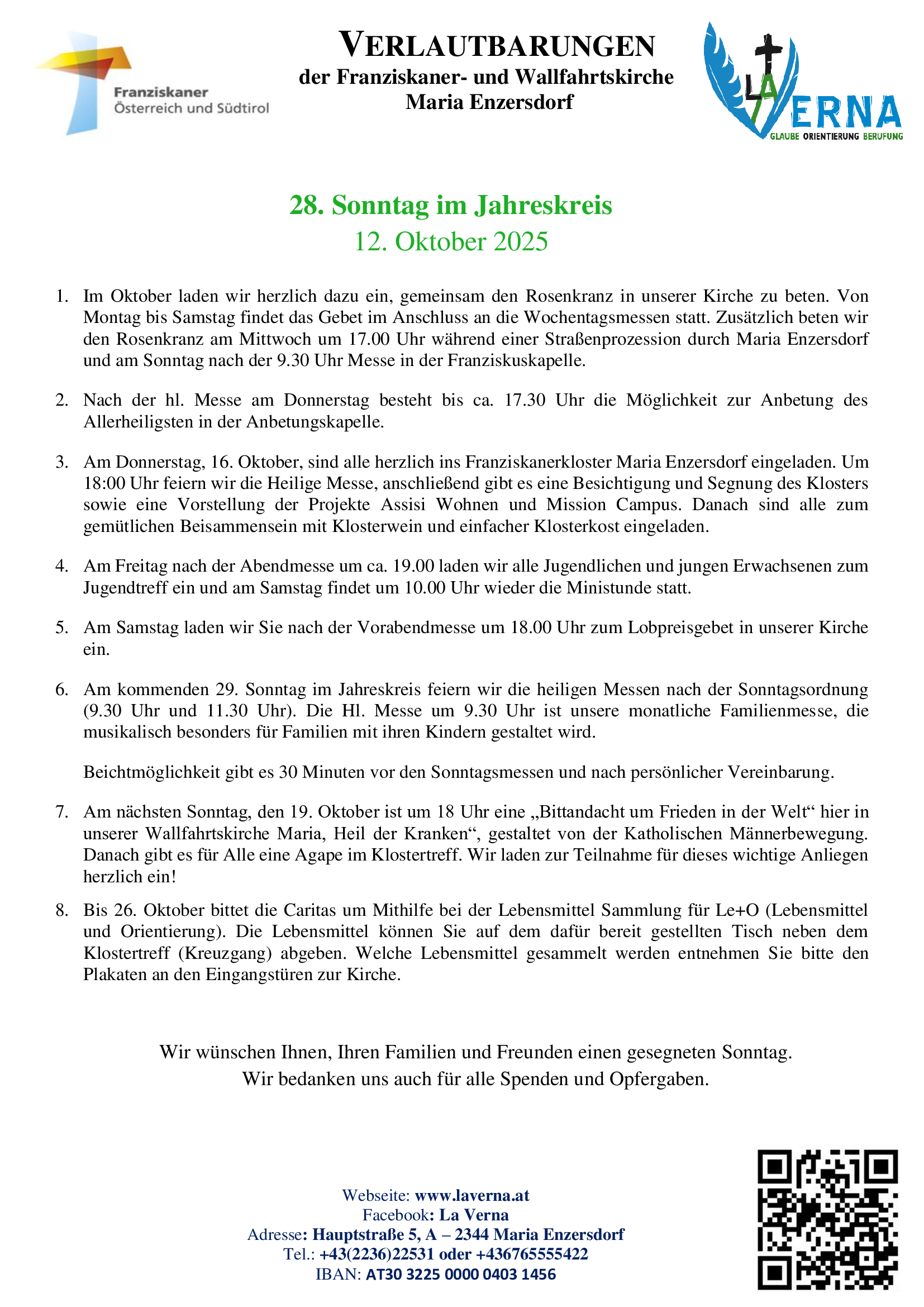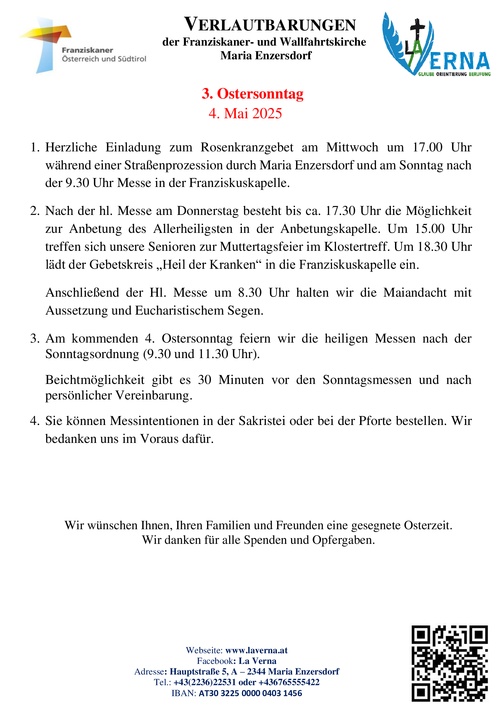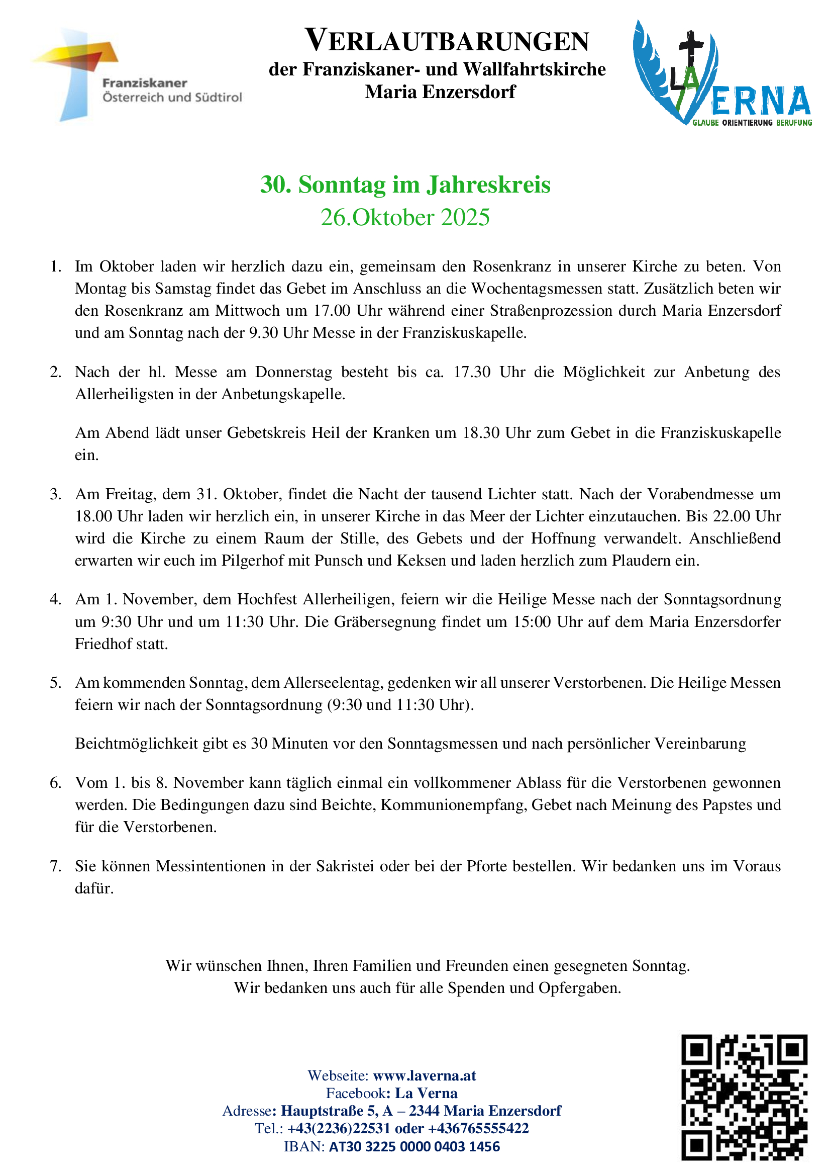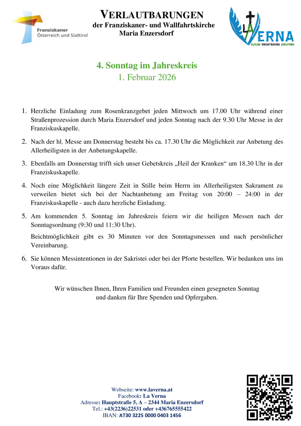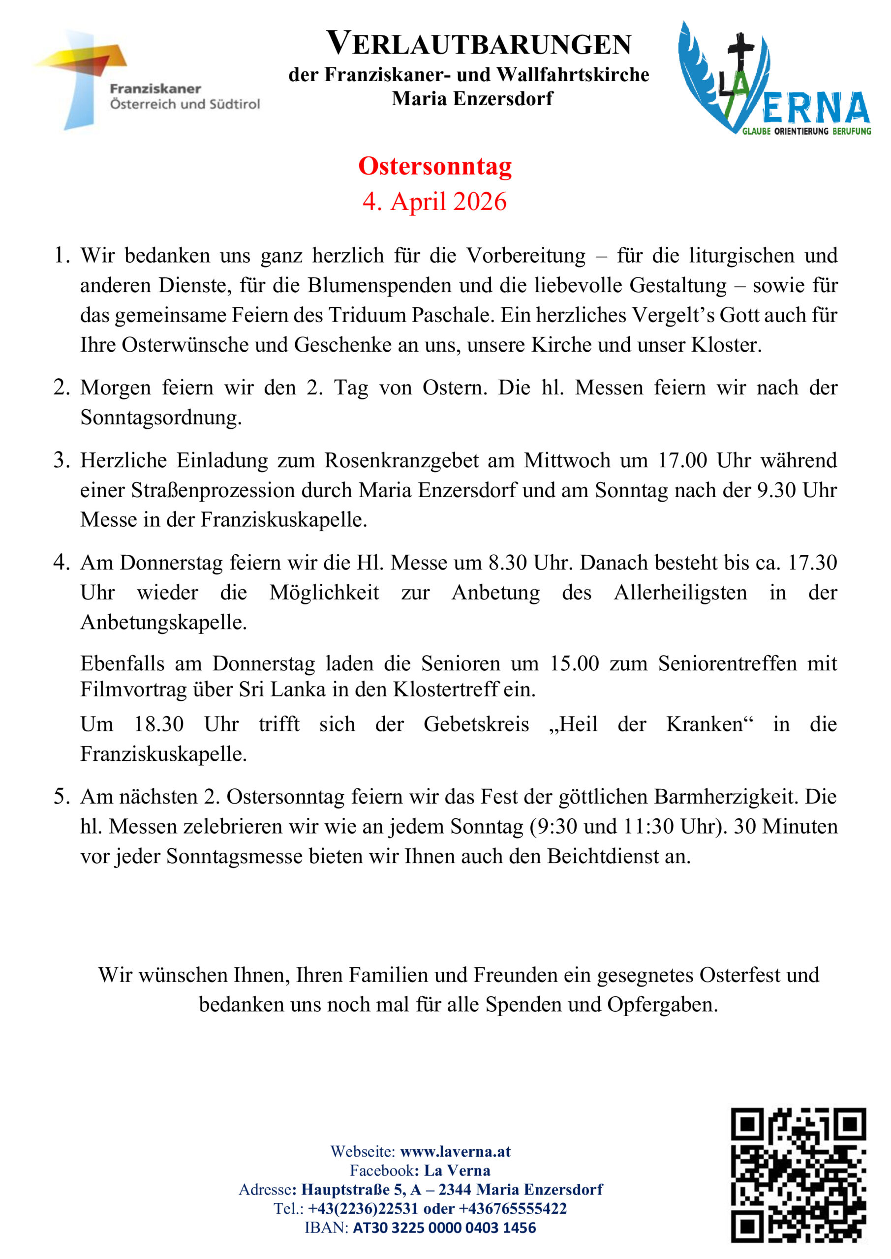 Verlautbarungen der Kloster- und Wallfahrtskirche