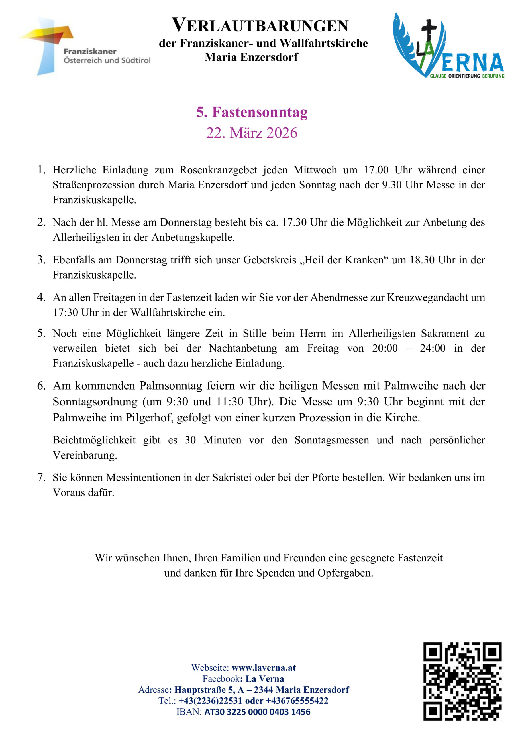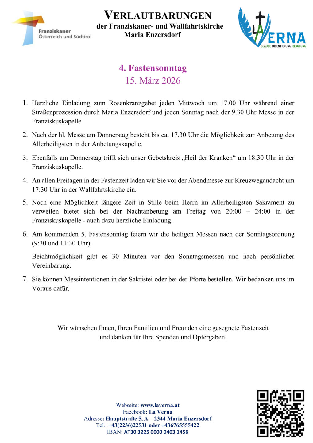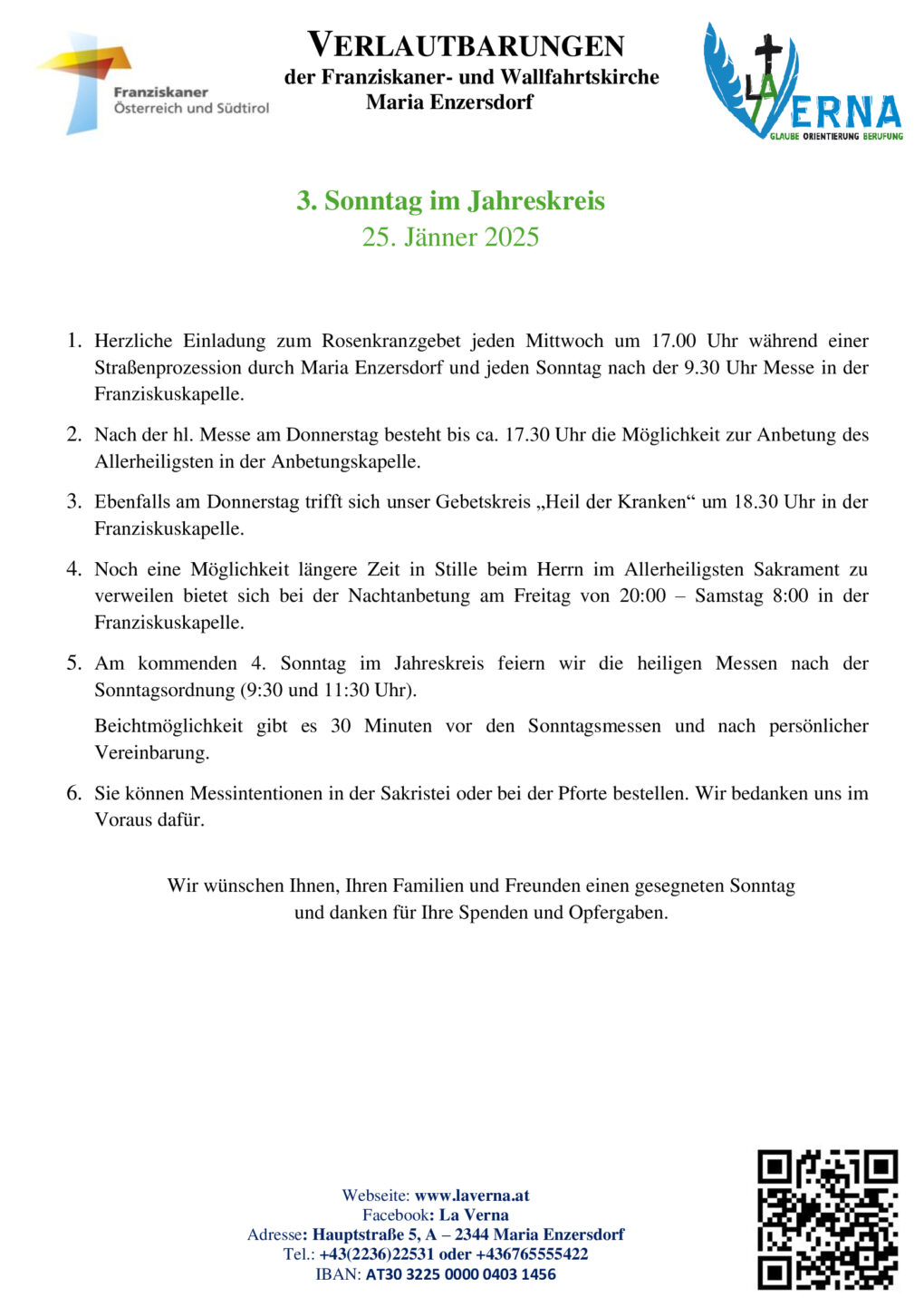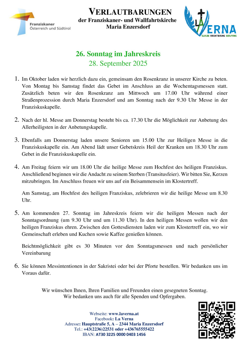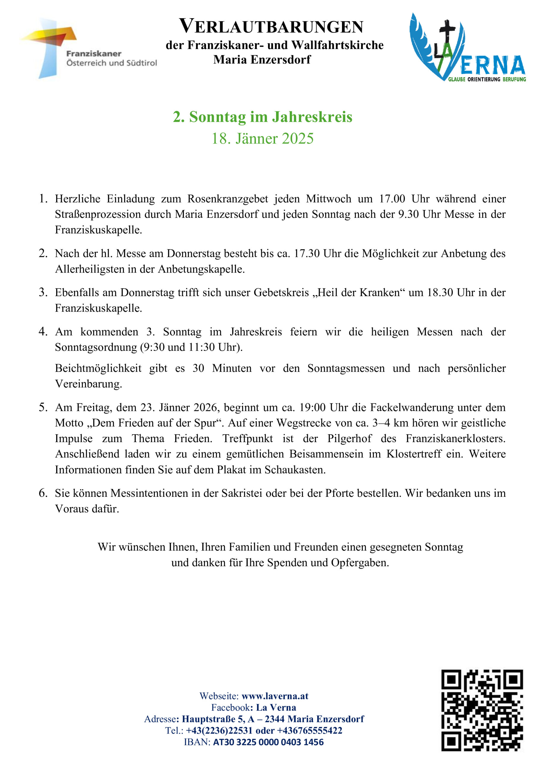 Verlautbarungen der Kloster- und Wallfahrtskirche